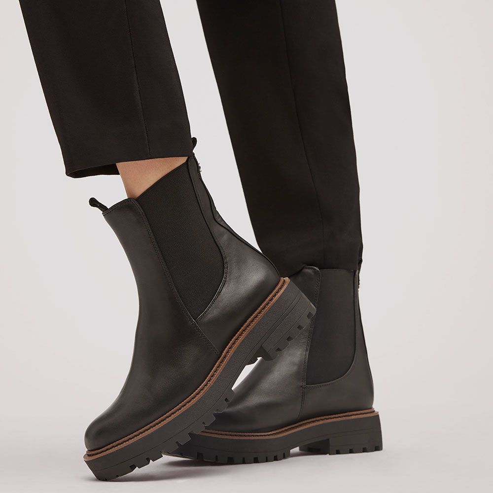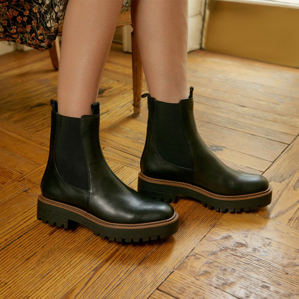 A heavily lugged sole with a utilitarian style update to a classic Chelsea boot